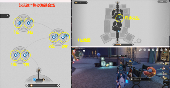 1、在地图【苏乐达™热砂海选会场】的6个小地图中都有一个【汽水先生】(地图上有图标显示),先分别去和6个【汽水先生】对话后,即可解锁6个小地图中的6个隐藏挑战,也就是会解锁【海选特快】右下角的【盛会百科】;