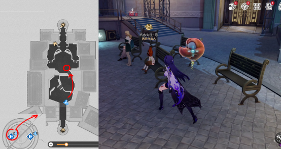 2、完成隐藏挑战:前往图中电梯的位置点击“前往宅邸???层(-2层)”,到达后和哈努兄弟进行对话即可完成隐藏挑战,不需要进行战斗。