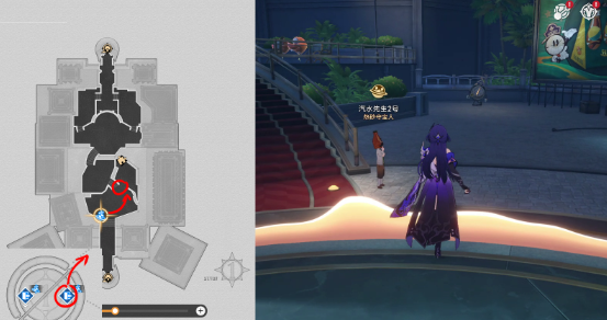 3、玩家需要前往下图位置和“汽水先生”进行对话,就能获得阅读物“未选择的路”,获得提示后“海选特快”装置就会出现在对应订单位置。