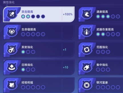 2、在特性强化方面,优先强化初始武器等级,这样就可以在后续的对局中降低关卡难度。