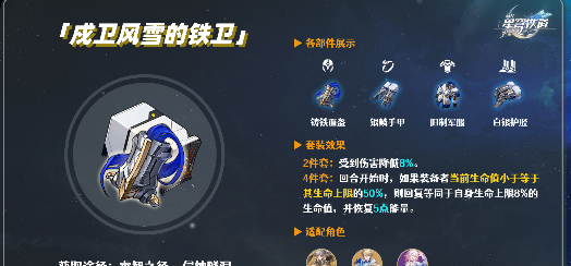 4、云璃的输出伤害和生命值相关,使用戍卫风雪的铁卫套装能够提升自己的能量恢复效率和生命值。
