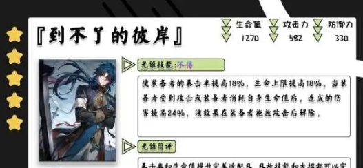 1、到不了的彼岸是五星限时光锥,能够提升装备者的暴击率和生命上限。