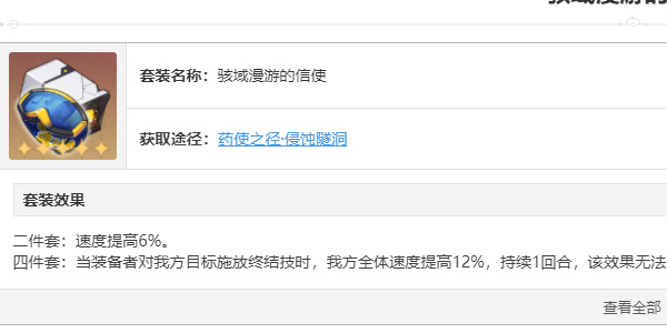 信使2件套可以提高花火的速度,四件套还可以让花火在释放大招时提高全队的速度,再次提高自己的辅助能力,是一个不错的选择。