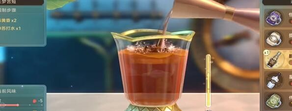 4、此时可以看到长梦苦短的原料配方,根据这个配方加入液态黄昏 x2醒神苏打水x1。