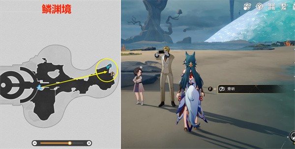 2、接着选择选项“鳞渊境”,前往鳞渊境找到了这2个人,选择旁听即可获得成就。