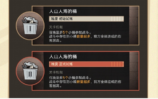 2、每一个关卡有初始试炼和正式试炼两个难度。
