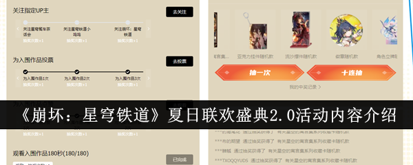 以上就是小编整理带来的崩坏星穹铁道夏日联欢盛典2.0活动内容介绍,更多相关游戏攻略,请关注这里下载站!