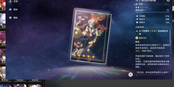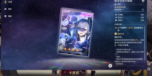 2、第一个应该就是这个【新手任务开始前】,这个是通过1.1版本活动获得,满叠可提高40%的效果命中,不过现在的性价比也不是很高了,后面都有很多的强力光锥。