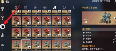 2、进入背包页面后,点击遗器并进行强化操作