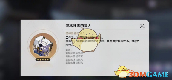 2、四件套效果:装备者施放终结技时,自身的暴击伤害提高25%,持续2回合。