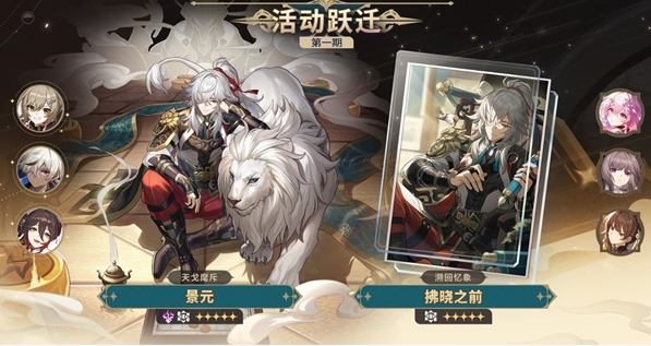 1、第一期角色活动跃迁:抽取“星期日”、“景元”的概率提升。