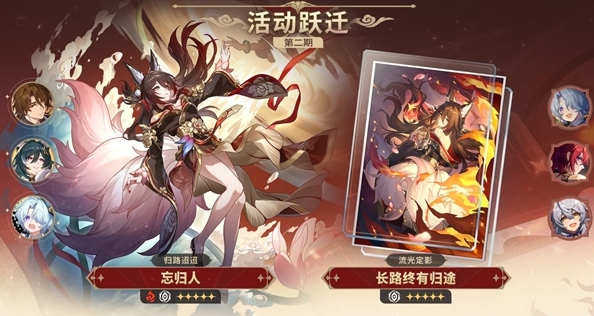 2、第二期角色活动跃迁:抽取“忘归人”、“流莹”概率提升。