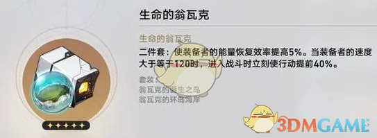 提高装备者5%的能量恢复效率,速度>=120进入战斗后,全队行动提前40%