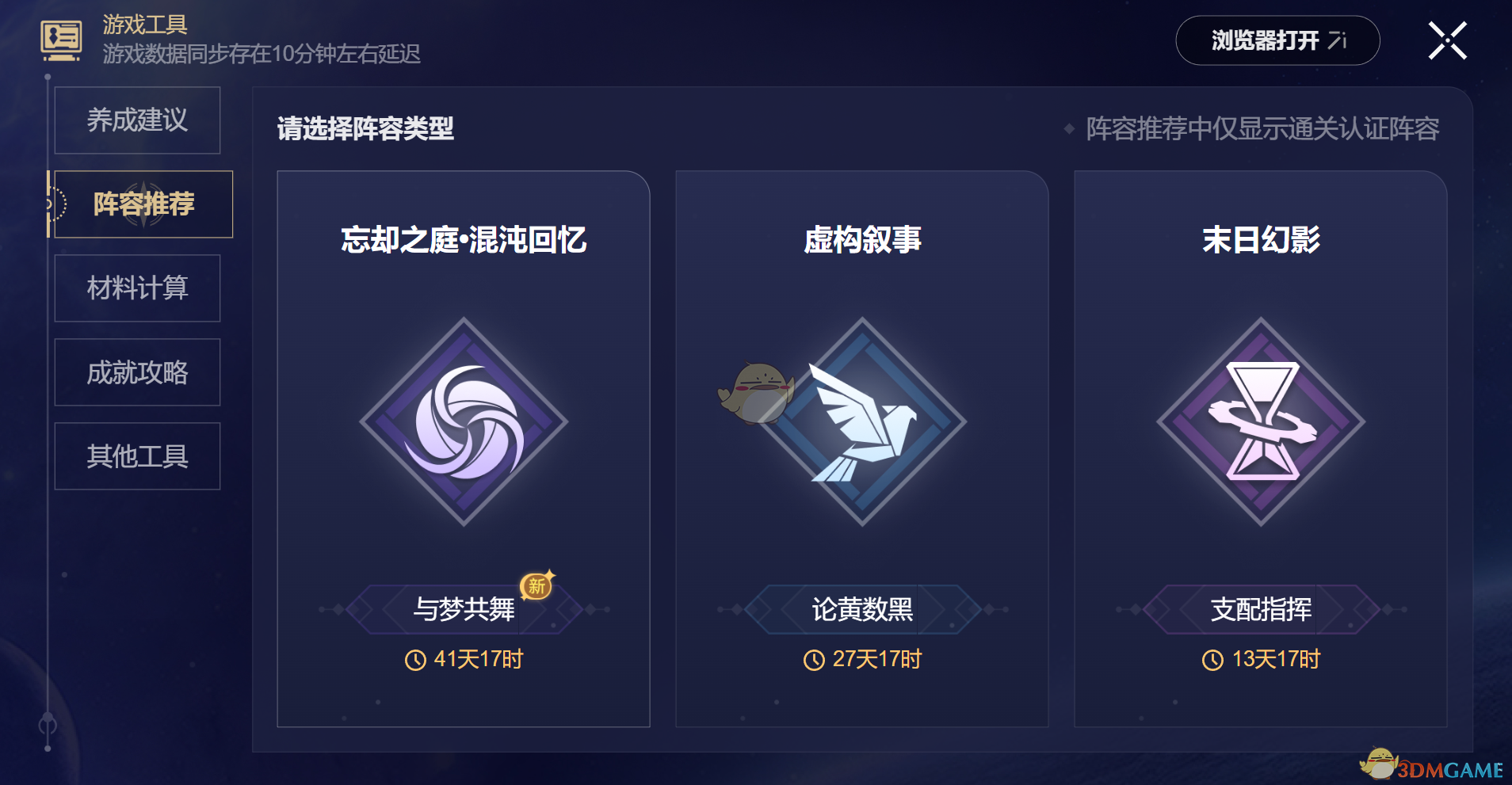 崩坏星穹铁道游戏随着混沌回忆•与梦共舞的开启,阵容推荐工具也迎来了更新,大家可以进入到工具页面查看合适的阵容配队攻略也可以上传自己的独家阵容,那么具体在哪查看呢?下面小编整理了《崩坏星穹铁道》阵容推荐工具查看位置介绍,一起看看吧。
