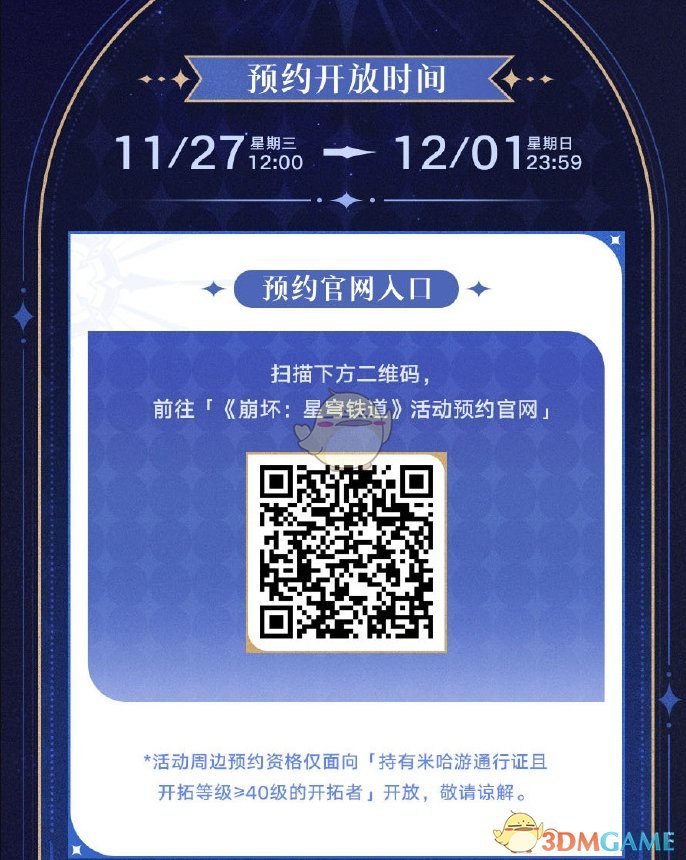 3、预约注意事项:活动周边预约资格仅面向「持有米哈游通行证且开拓等级>40级的开拓者」开放;