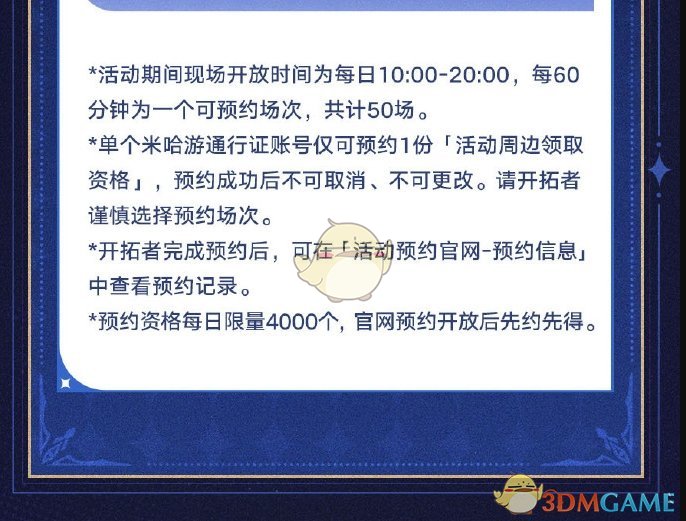 2、单个米哈游通行证账号仅可预约1份「活动周边领取资格」,预约成功后不可取消、不可更改。