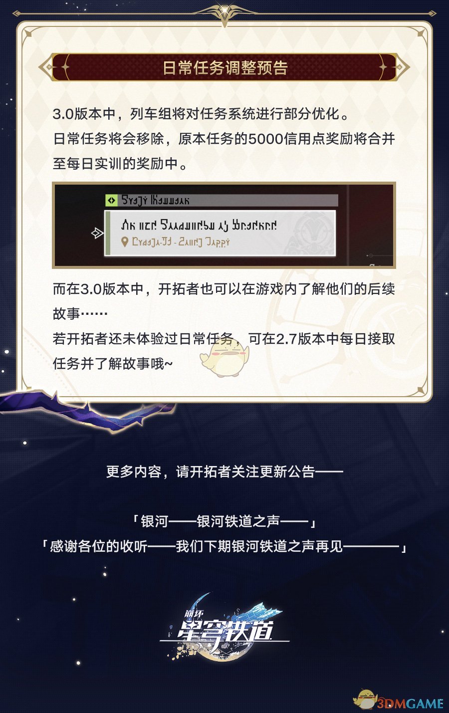 以上就是小编整理带来的《崩坏:星穹铁道》2.7日常任务调整一览,更多相关游戏攻略,请关注这里下载站!