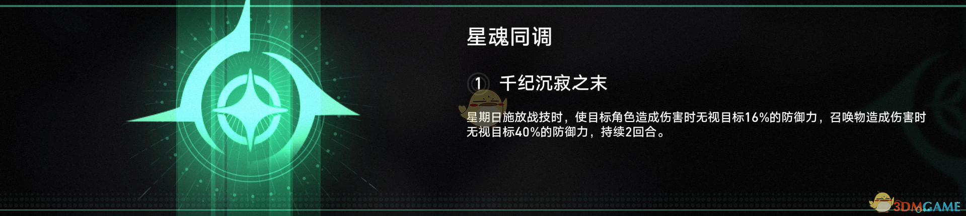 2、2魂:首次施放终结技+2战技点,缓解队伍战技资源的使用,大幅优化后续战技的覆盖,同时为增益目标进一步提供30%增伤;