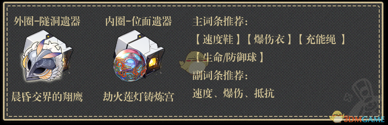 主词条:速度鞋 爆伤衣 充能绳 生命/防御球