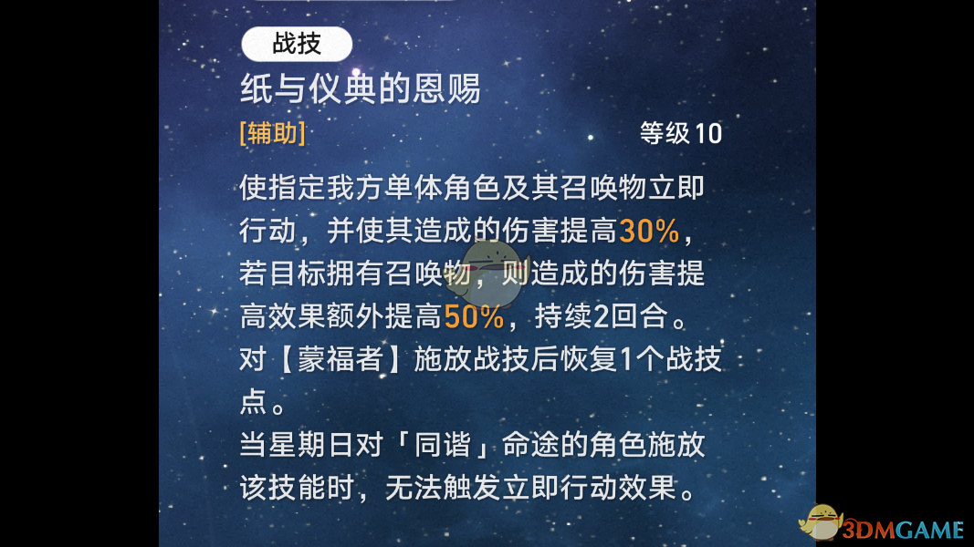 1、战技可以为召唤物角色提供持续2回合的巨额增伤,同时使角色、召唤物立刻行动;经过测试,星期日对角色释放战技后,行动次序固定为角色先行动,召唤物后行动。