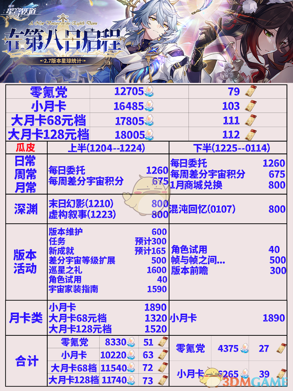 以上就是小编整理带来的《崩坏:星穹铁道》2.7月卡类可获取星琼一览,更多相关游戏攻略,请关注这里下载站!