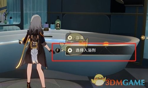3、接着在弹出的互动选项中,点击选择入浴剂,切换三次个入浴剂泡澡;