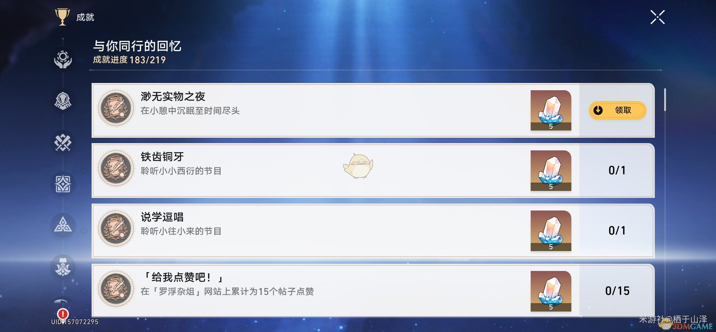 成就描述:在小憩中沉眠至时间尽头