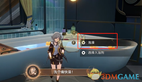 3、接着在触发的互动选项中,点击泡澡选择,泡澡后即可解锁成就。