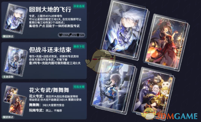 1、优先选择:专武【回到大地的飞行】,其次鸭鸭光锥【但战斗还未结束】以及四星光锥【舞舞舞 精五】。
