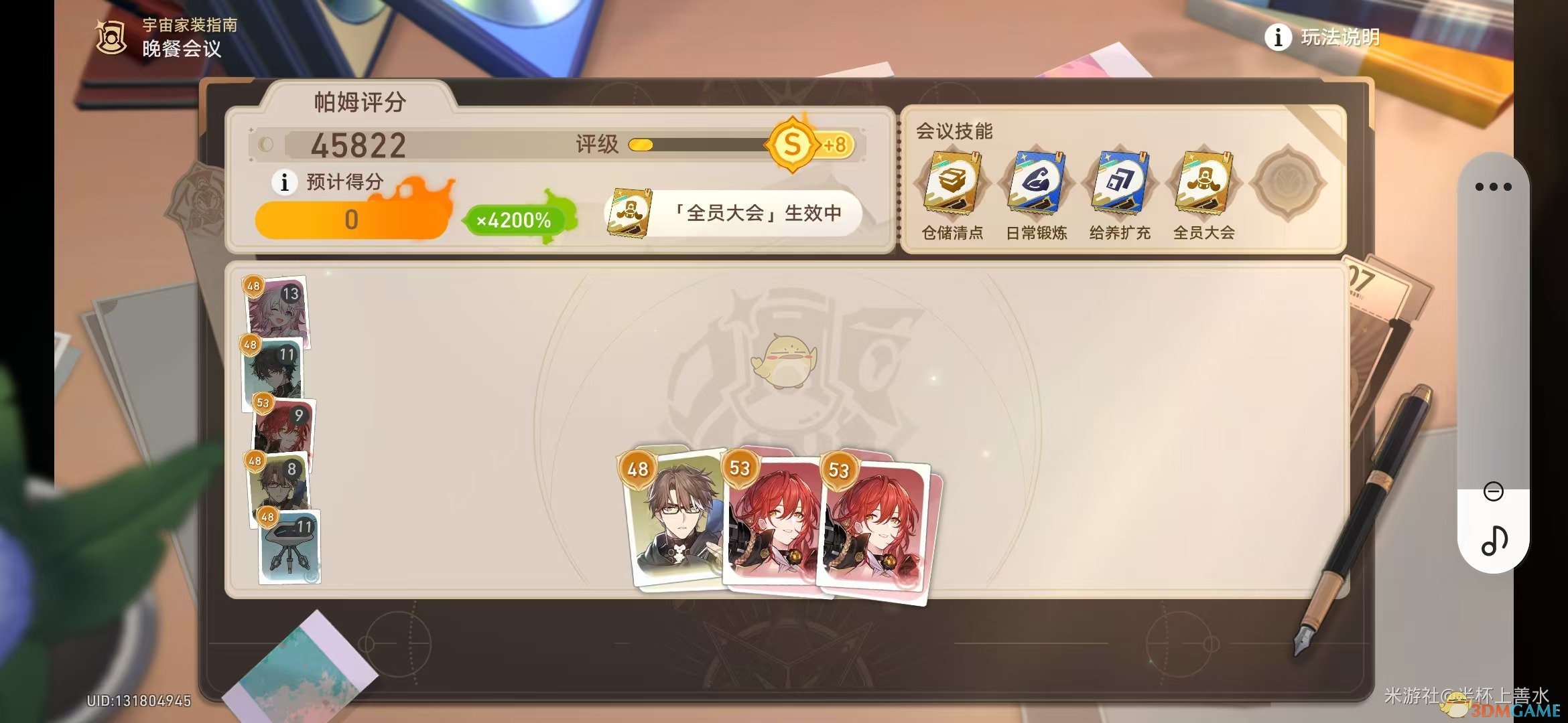 答:在宇宙家装指南活动中,单次会议的帕姆评分达到30000。