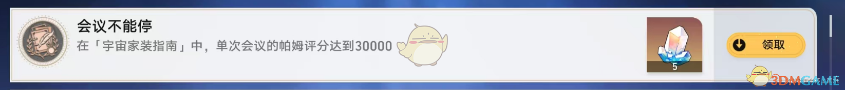 会议不能停是崩坏星穹铁道在2.7版本更新后上线的与你同行的回忆系列成就,这个成就的解锁方法也比较简单,参与宇宙家装指南活动,在单次的会议帕姆评分达到30000,就可以获得成就了,在活动的第三阶段可以轻松获取成就,不清楚怎么获取成就的玩家可以参考小编整理的《崩坏星穹铁道》2.7会议不能停成就解锁方法,一起来看看吧。