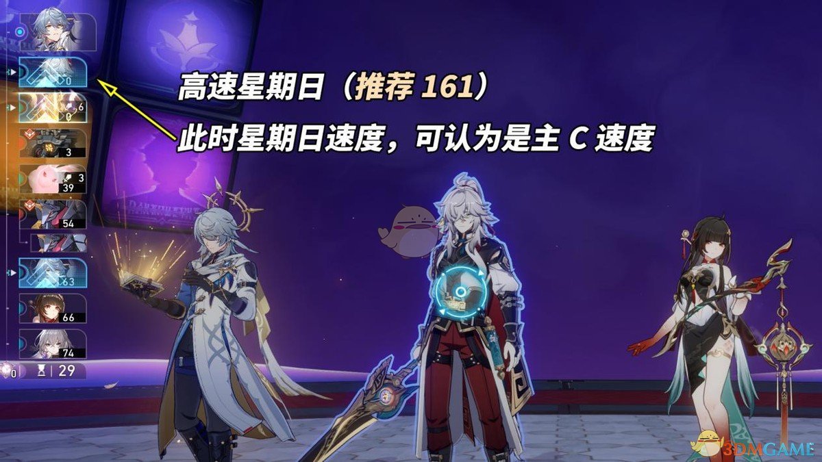走高速路线,依靠战技立即行动机制,此时星期日速度基本等同主C速度,主C可全力堆输出方面数值,无视速度压力。战技点消耗会比第①种少一些,适合无光锥「回到大地的飞行」的玩家。