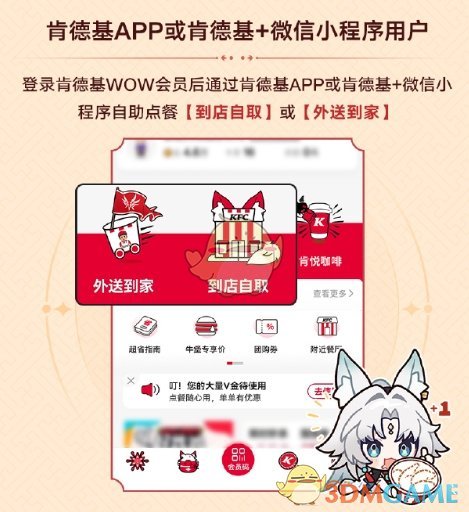 1、玩家们需登录肯德基WOW会员后;