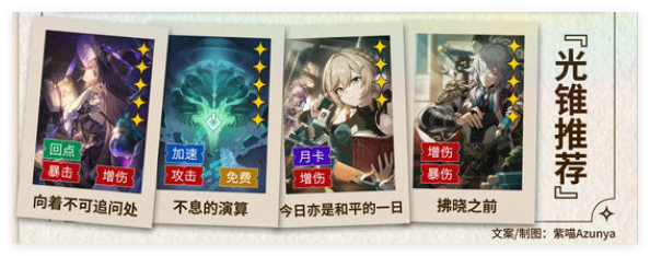 光锥最好是选专武,可以回点,其他下位都只是伤害增益,有啥带啥就行。