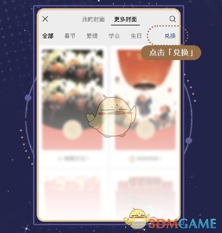 2、接着在封面中,点击右上角的兑换按钮;