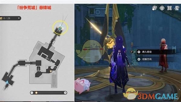 接下来,前往下图所示的位置,直接选择【跨入密径】,然后飞到左上方即可,无需切换方向。