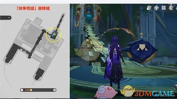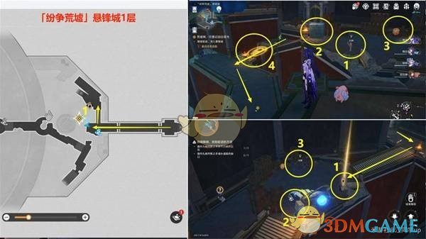 后续前往「纷争荒墟」悬锋城2层的2号任务点时,发现路上的木栏杆将挡住前进。