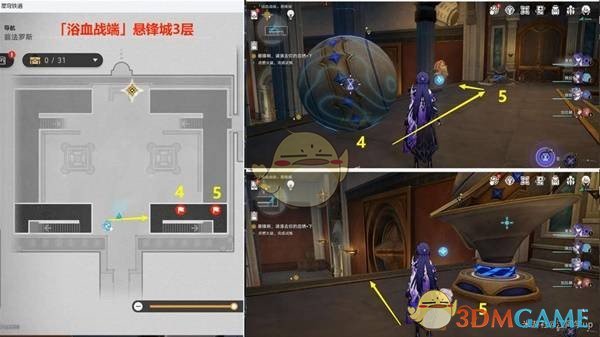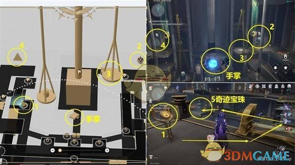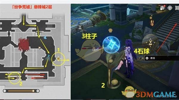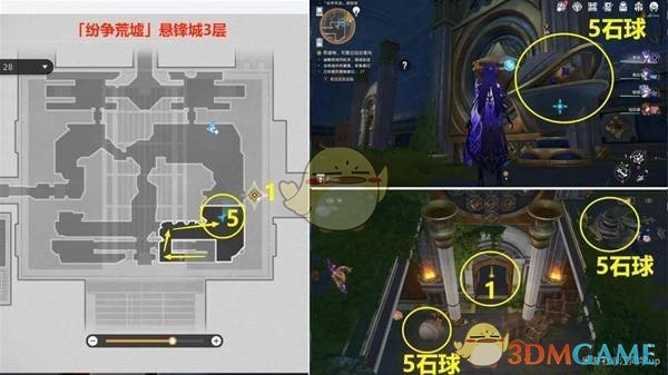 接下来,从传送点右侧前往3层的4号石球位置,将4号石球回溯到5号基座位置。