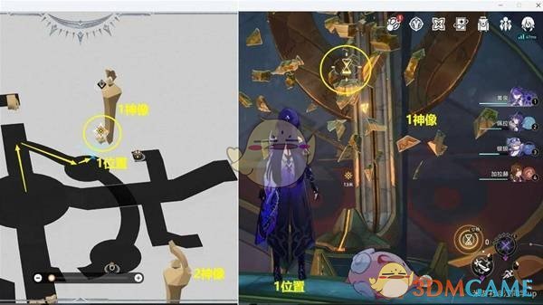 第一个神像,只需追踪任务指引,前往神像旁的1号位置,长按空格键进行回溯,即可完成第一个神像的解密。