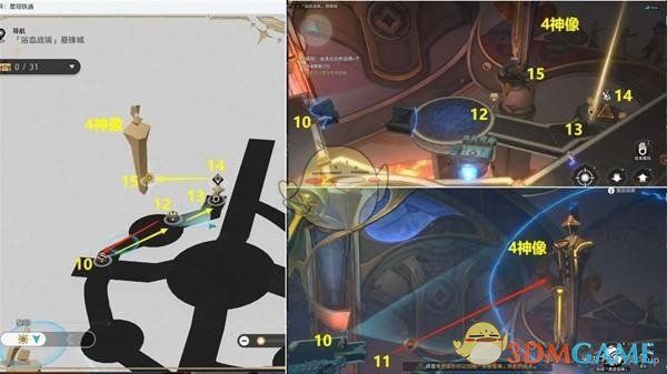然后退出,并稍微左移至12号位置,面对4号神像,长按空格键进行回溯,即可完成4号神像的解密。