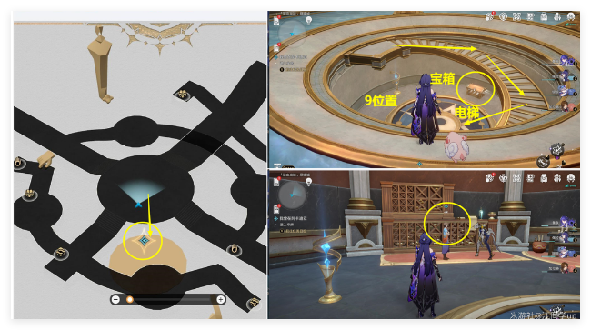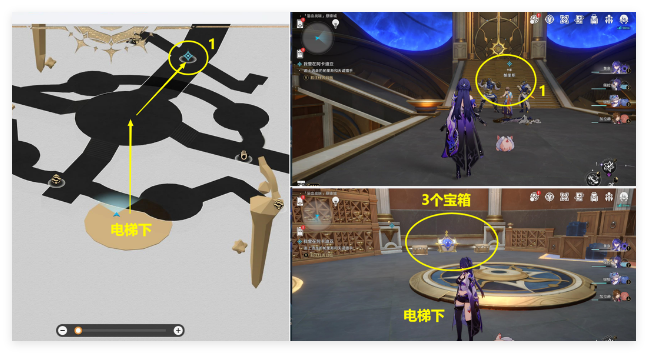 (7)电梯下还有3个宝箱可以顺便一拿,接着再追踪任务去上面1位置对话