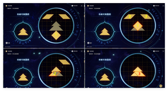 (9)上图解密:先将1方块放到中间,接着再将2和3分别放到中间图像的左下和右下,即可完成解密