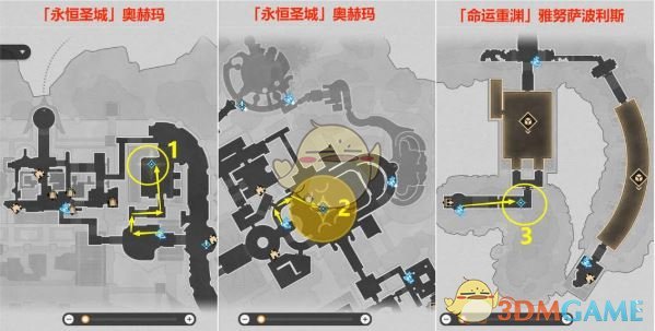 2、接着追踪任务分别去下图1和2任务点对话和去3任务点打怪