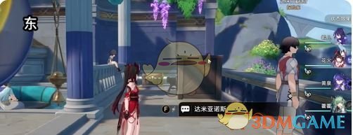 2、然后向西北方向前进,点击调查面前的红色坐垫,接取任务。
