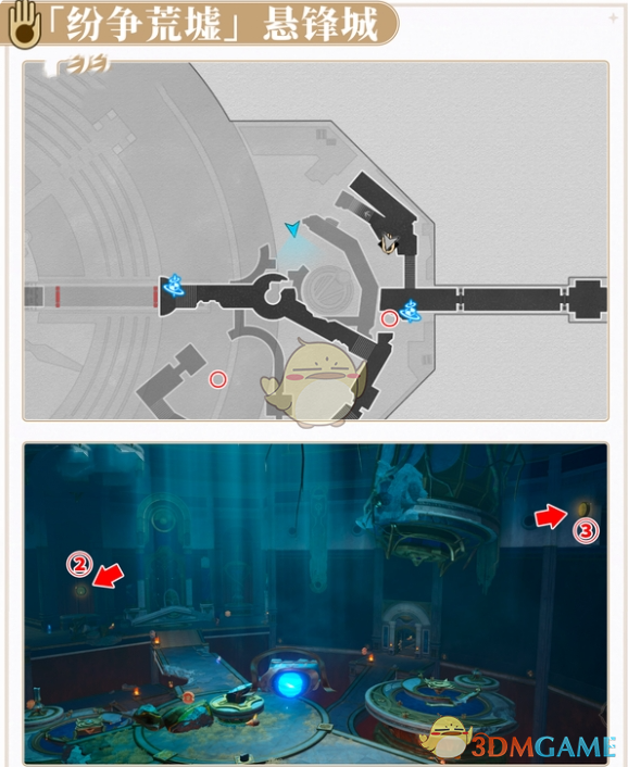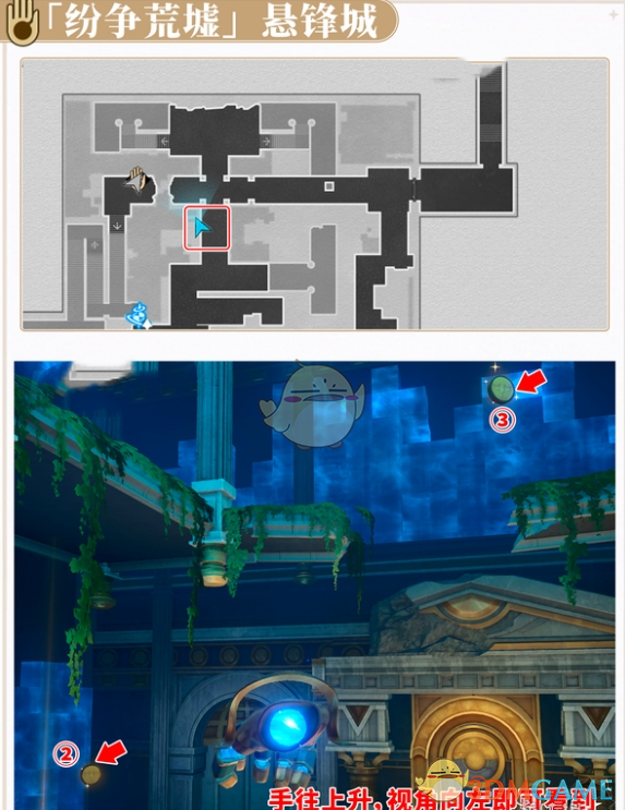 4、最后根据下图的顺序依次开启序号2和序号3处的机关即可过关。