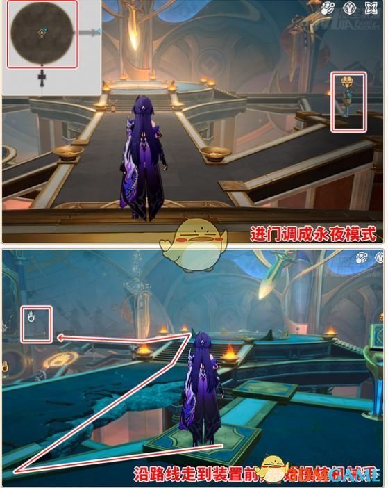 2、第二个宝箱:先来到右侧点击开启永夜模式,再沿路线走到装置前,开始操控机械手。