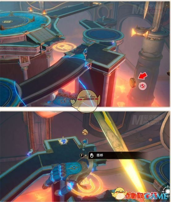 2、然后点击交互键进行搭桥即可过关。