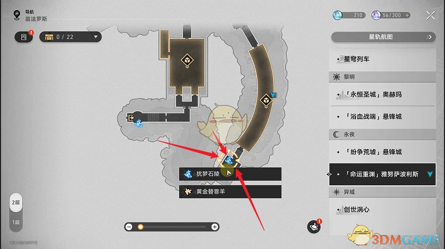 我们打开地图来到「命运重渊」雅努萨波利斯右下角「扰梦石陵」的锚点