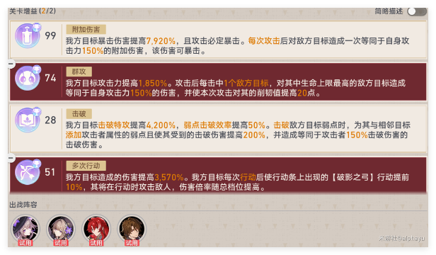 注:buff1使用无试用阵容,较难完成,所以没有使用。buff1、2、4任选两个均可