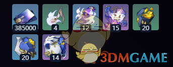 385000信用点、4云际音符、12空际小节、15天外乐章、20恐惧踏碎血肉、20勇气撕裂胸膛、14荣耀洗礼身躯